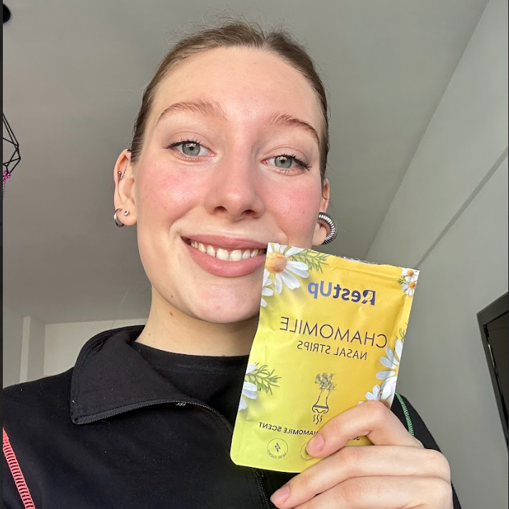 La camomille est connue pour son effet apaisant, mais dans le thé, l'effet est court. RestUp agit toute la nuit : chaque bandelette diffuse un subtil parfum de camomille que vous inhalez par le nez et qui apaise votre système nerveux. Exactement ce dont votre cerveau a besoin pour vraiment se calmer et s'endormir rapidement.